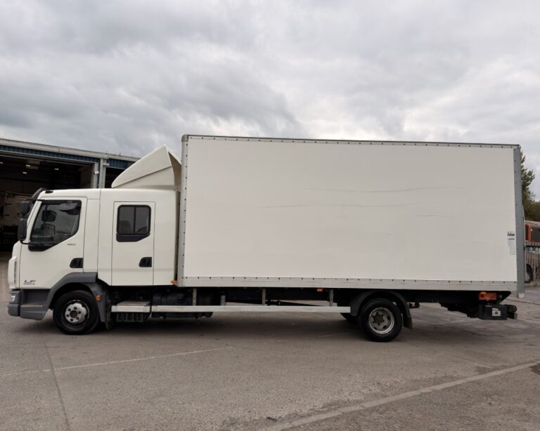 2017 (67) DAF LF 180 FA 7.5 Tonne Crew Cab Box Truck with Cantilever Tail Lift (Removal Spec), 4500cc Diesel engine with a 6-speed manual gearbox, 6-seat RARE Crew cab, Removal truck specification body, Heater in crew cab, Cantilever tail lift with wonder lead and in-cab isolation switch, Air conditioning, ONLY 99K km on the clock, Digital tachograph, Remote central locking, Electric windows and side mirrors, Roof hatch, Cruise control, Speed limiter, Bluetooth connectivity with handsfree calling and steering wheel controls, Trip computer.