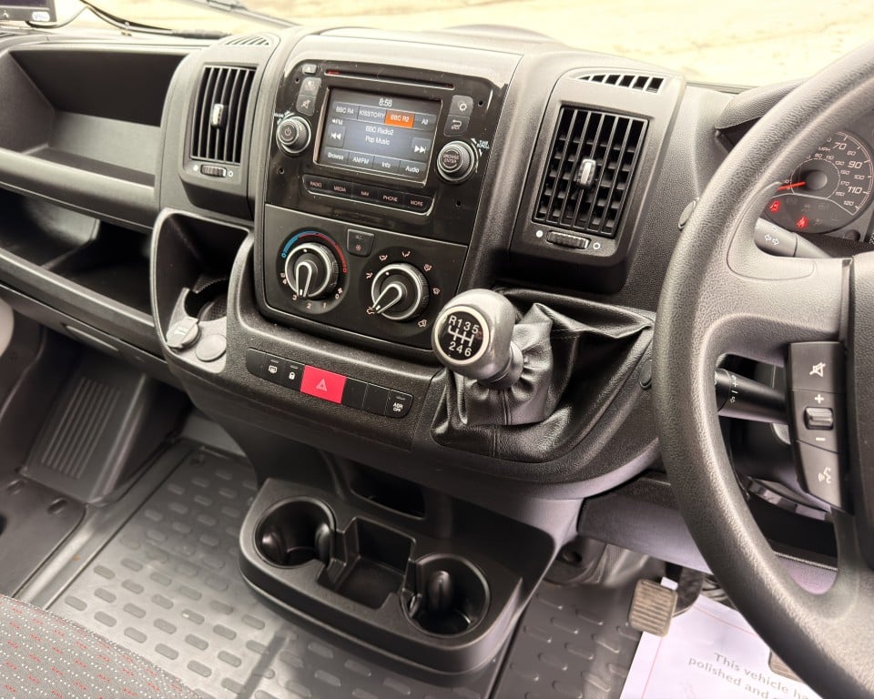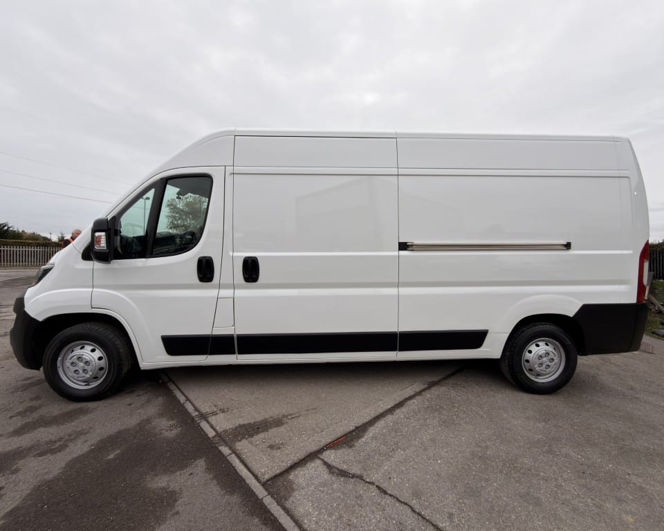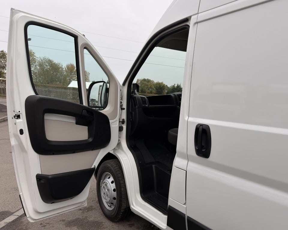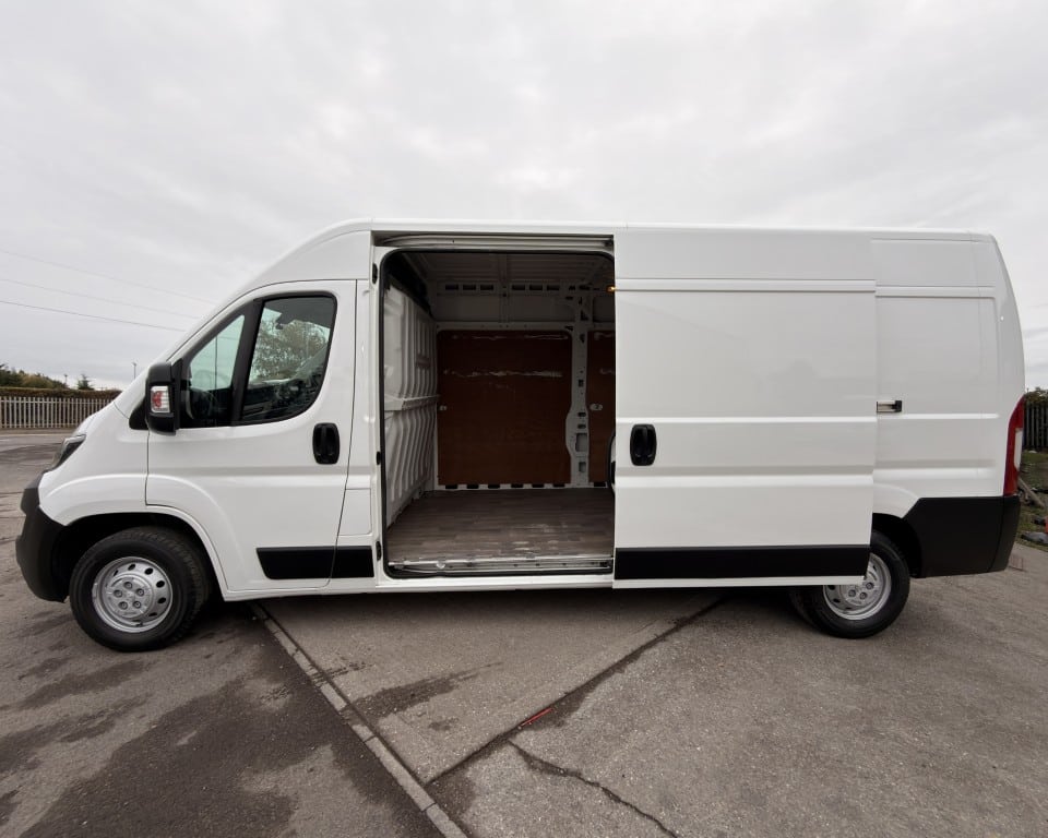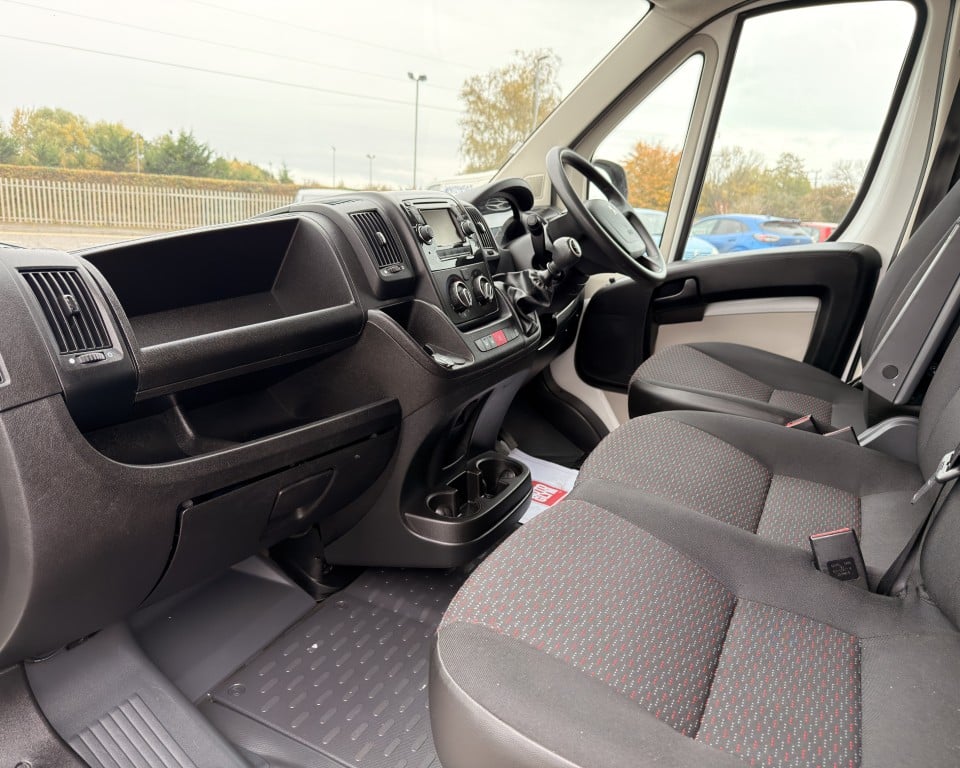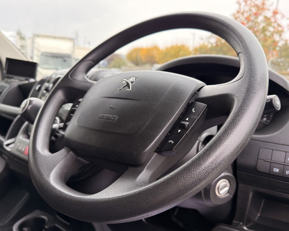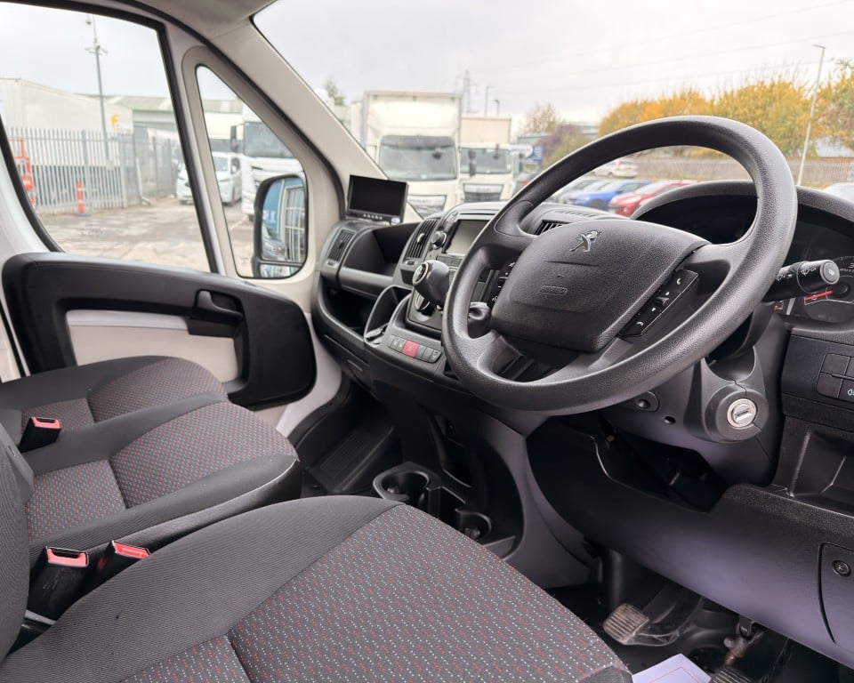 2019 (68) Peugeot Boxer 2.0 BlueHDI 335 Professional L3H2 Panel Van, 2 litre diesel engine with a 6-speed manual gearbox, Air conditioning, Reversing camera & rear sensors, Cruise control, Bluetooth with handsfree calling and steering wheel controls, Beacon, Electric side mirrors and windows, Remote central locking, NS sliding door, Ply-lining, 3-seats with cloth interior, Trip computer.
