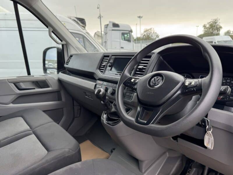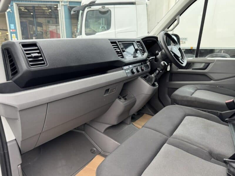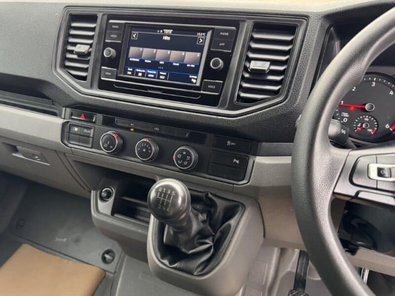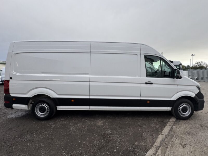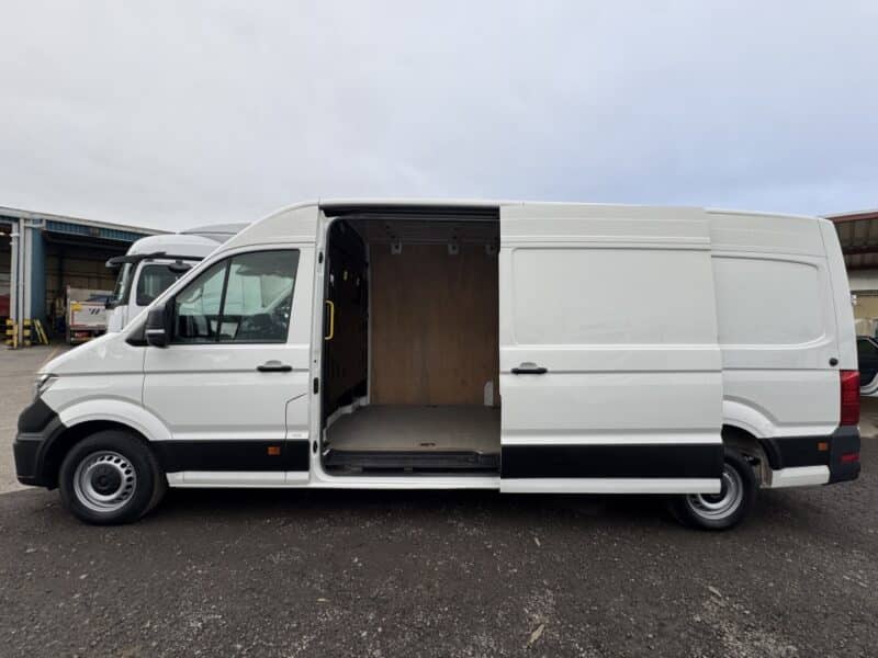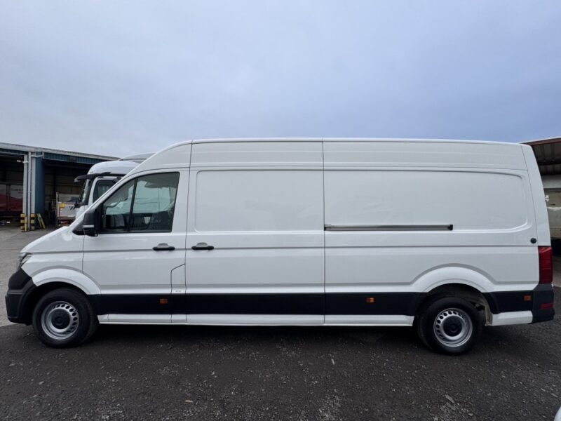 2022 (72) Volkswagen Crafter 2.0 TDI CR35 Trendline FWD LWB Panel Van (140ps), 2 litre diesel engine with a 6-speed manual gearbox, Air conditioning, Front and rear sensors, Cruise control with speed limiter, Bluetooth with handsfree calling with steering wheel controls, Electric side mirrors and side windows, DAB radio, Touchscreen centre console, NS sliding loading door, Ply-lining, Trip computer.