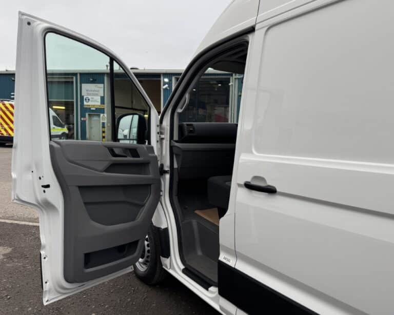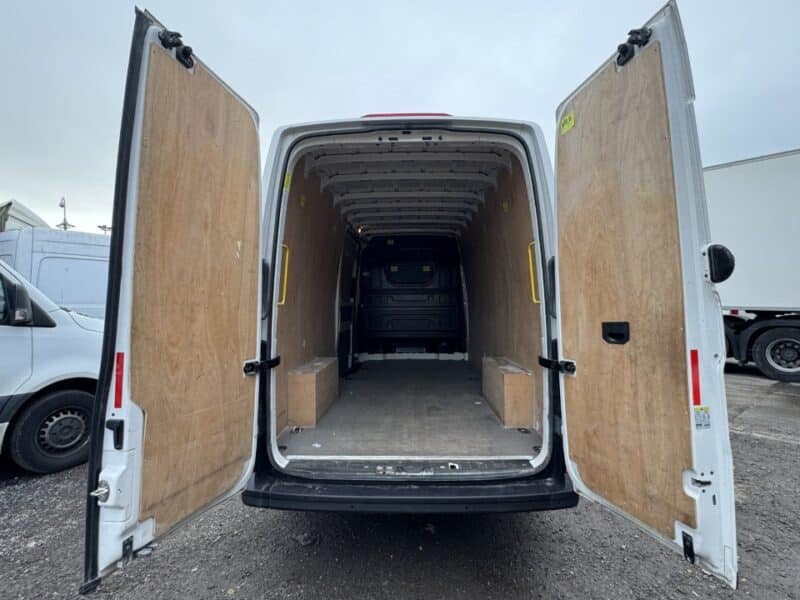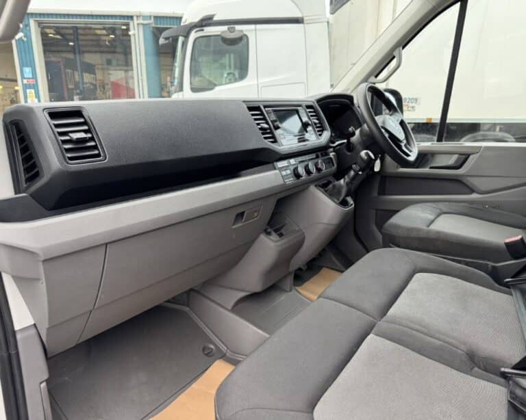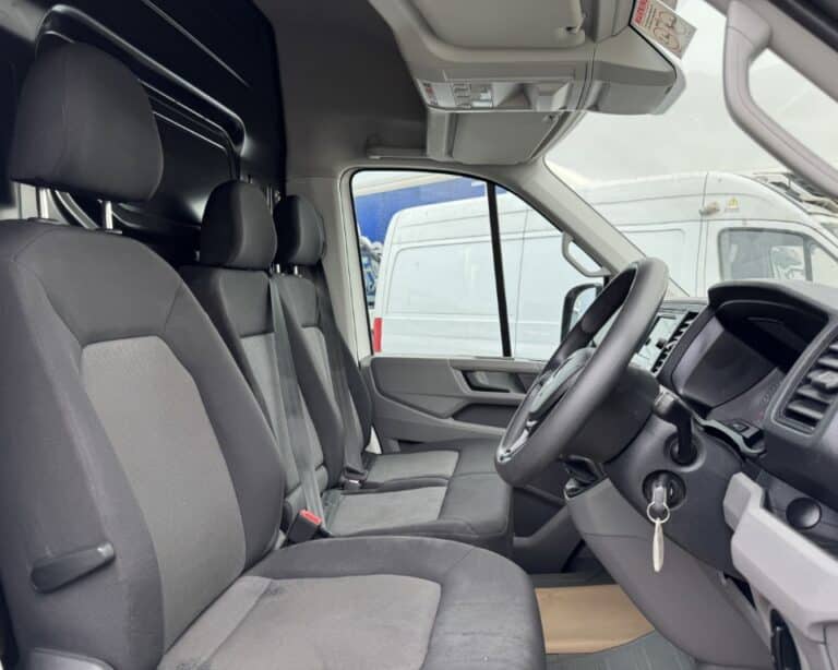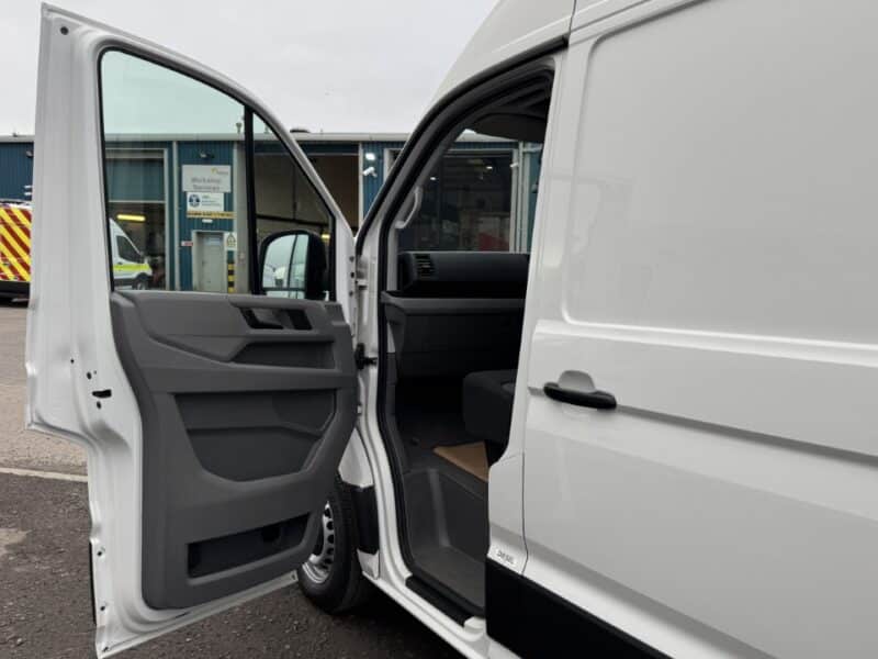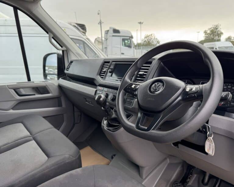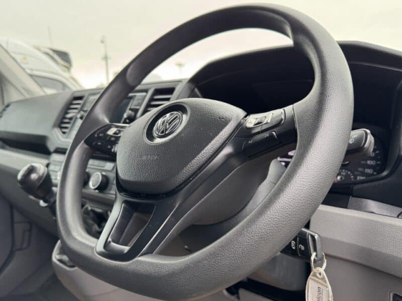 2022 (72) Volkswagen Crafter 2.0 TDI CR35 Trendline FWD LWB Panel Van (140ps), 2 litre diesel engine with a 6-speed manual gearbox, Air conditioning, Front and rear sensors, Cruise control with speed limiter, Bluetooth with handsfree calling with steering wheel controls, Electric side mirrors and side windows, DAB radio, Touchscreen centre console, NS sliding loading door, Ply-lining, Trip computer.